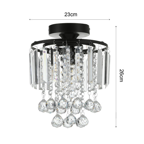Black 23x26cm Bedroom Crystal LED Ceiling Light