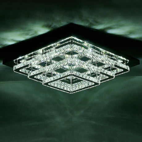 50CM Square LED Crystal Pendant Ceiling Light Cool White