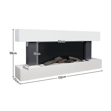 White Modern Wall Mounted Electric Fireplace Heater with Remote Control