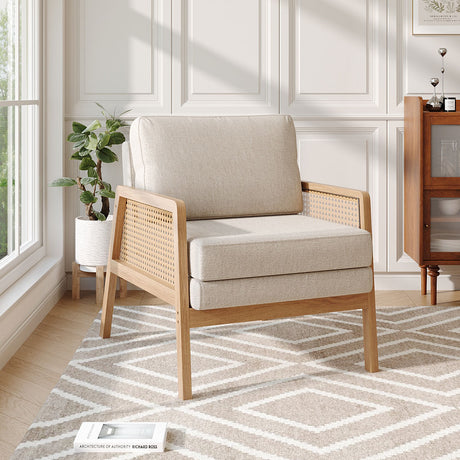 Cosy Wooden Armchair with Cane Sides Accent Chair