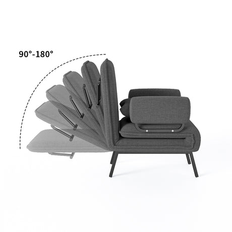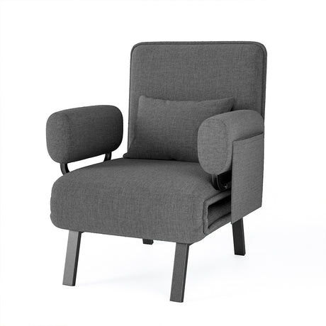 Grey Convertible Single Sofa Bed with Pillow and Side Pocket