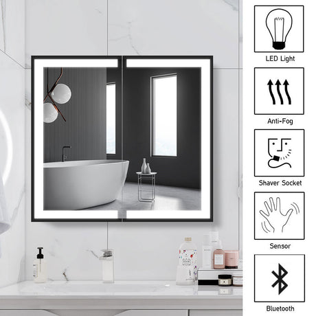 Black Frame LED Illuminated Bathroom Touch Sensor Mirror Cabinet