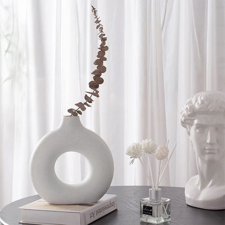 18cmW x 19cmH Nordic Style Ceramic Round Vase in White