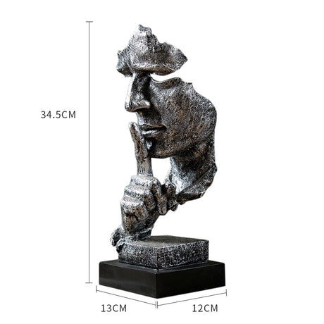 Sculpture Thinker Resin Art Figurine Ornament, Retro Silver 13x12x34.5cm