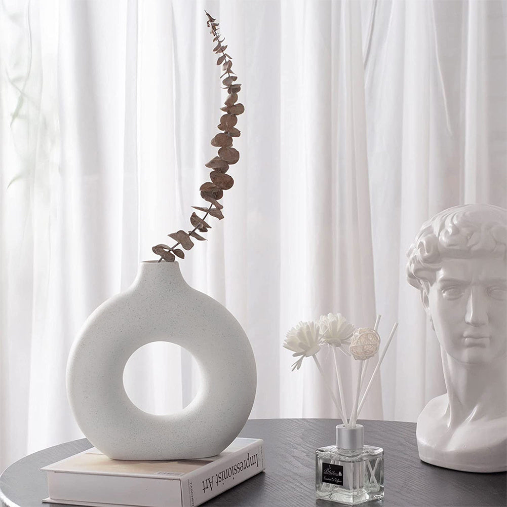 Embrace the essence of Nordic design with this ceramic round vase in a clean and