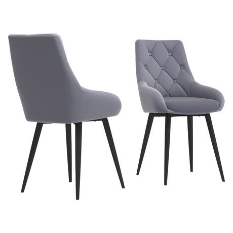 Set of 2 PU Leather Padded Seat Metal Legs Dining Chair Black