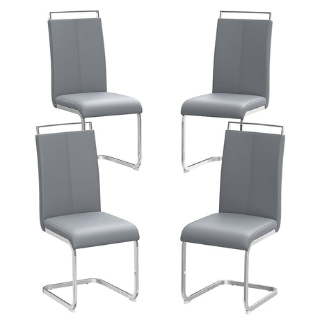 Set of 4 PU Leather Padded Seat Metal Legs Dining Chair Grey