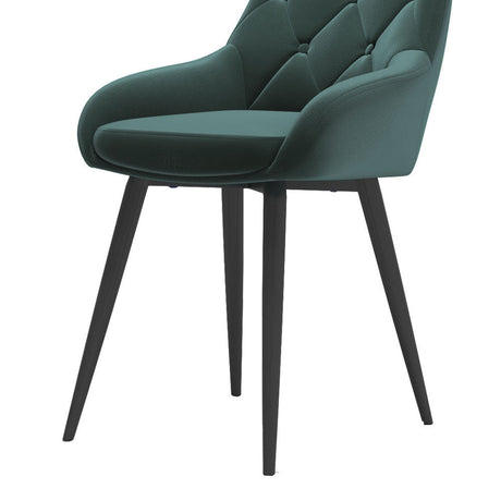 Set of 2 Green Velvet Metal Legs Button Upholstered Dining Chair