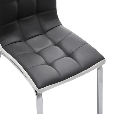 Set of 4 PU Leather Padded Seat Metal Legs Dining Chair Black