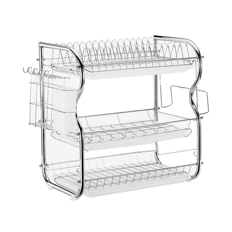 3 Tier Chrome Dish Drying Rack Cutlery Cups Holder with Drip Tray