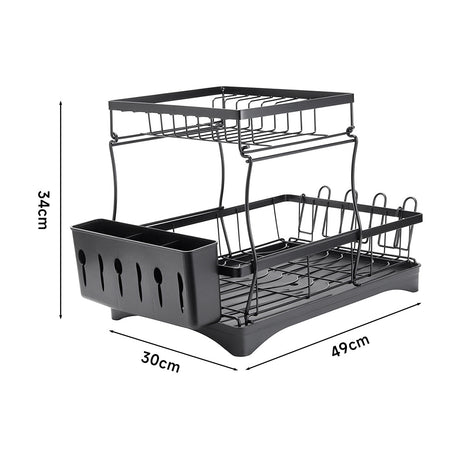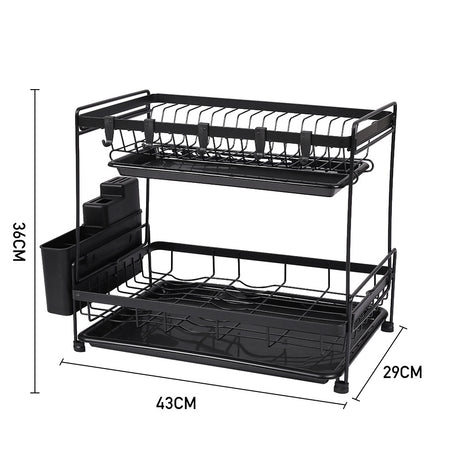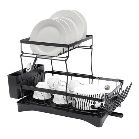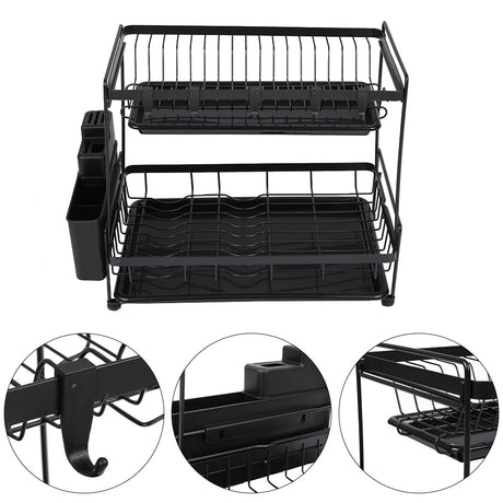 2-Tier Metal Dish Rack with Utensil Holder Dish Drainer