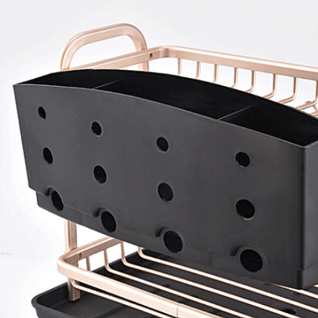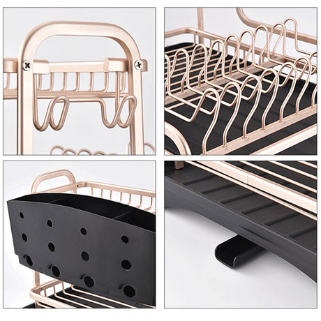2 Tier Aluminum Dish Storage Rack with Cutlery Holder Drain Hole