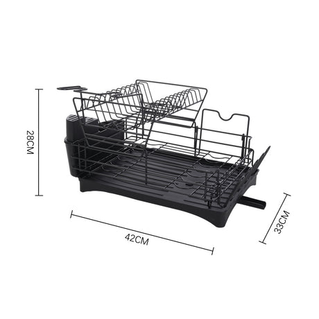 Black Multifunctional 2 Tier Detachable Dish Drainer Rack
