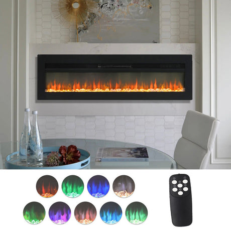 LED Recessed Wall Mounted Freestanding Electric Fireplace 9 Flame Colors with Remote Control,60 Inch