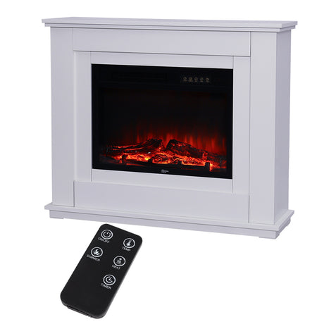 Modern White Electric Fireplace with LED Flame & Remote Control Heater