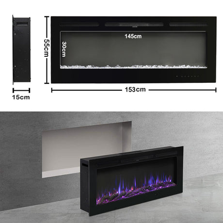 60 Inch LED Electric Fireplace Wall Mounted Wall Insert Heater 9 Flame Colours