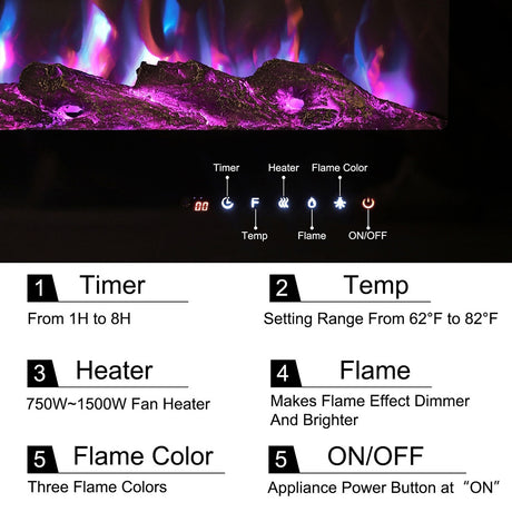 LED Recessed Wall Mounted Freestanding Electric Fireplace 9 Flame Colors with Remote Control,50 Inch