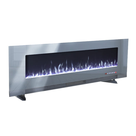 Grey 72 Inch Wall Mounted LED Electric Fireplace with 9 Flame Colours