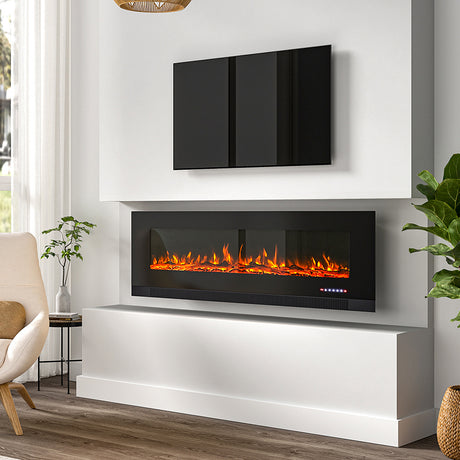 Black 50 Inch Wall Mounted LED Electric Fireplace with 9 Flame Colours