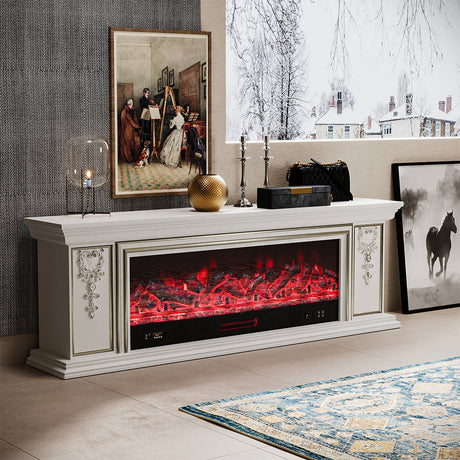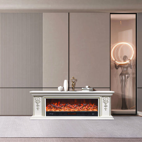 White TV Stand Electric Fireplace 7 Flame Colors Adjustable Flame with Remote