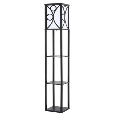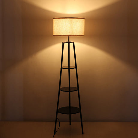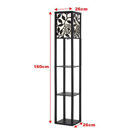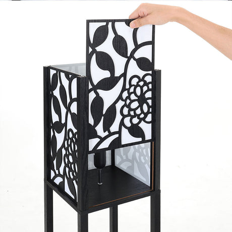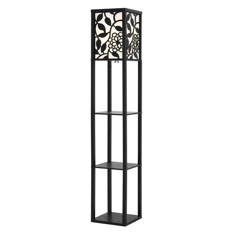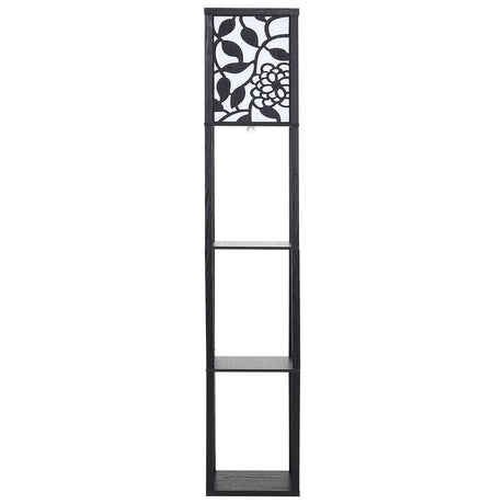 3 in 1 Wooden and Linen Floor Lamp with Shelves,Black Vines