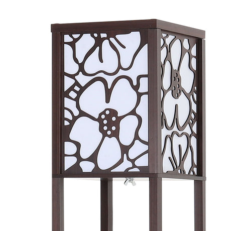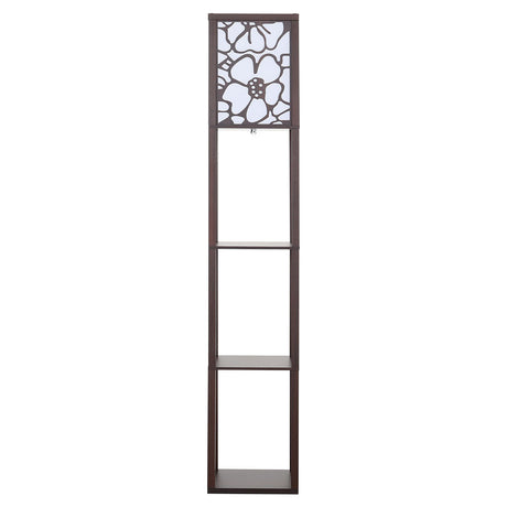 3 in 1 Wooden and Linen Floor Lamp with Shelves,Walnut Flower