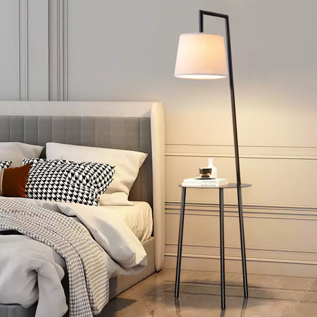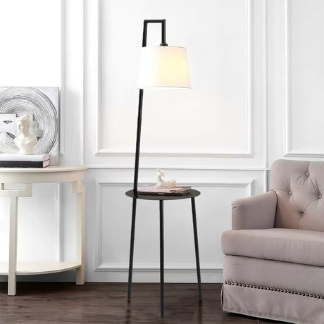 Metal Tray Table Floor Lamp with Linen Lampshade