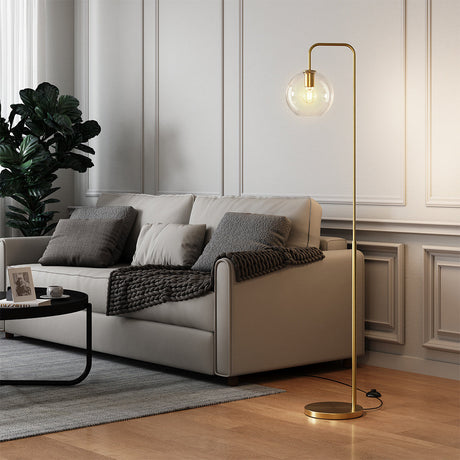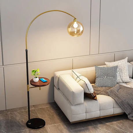 Modern Adjustable Arc Floor Lamp with Wood Tray