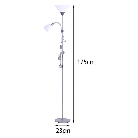 175CM Mother and Child Adjustable Floor Reading Lamp Silver Grey