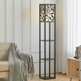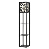 3 in 1 Wooden and Linen Floor Lamp with Shelves,Black Vines