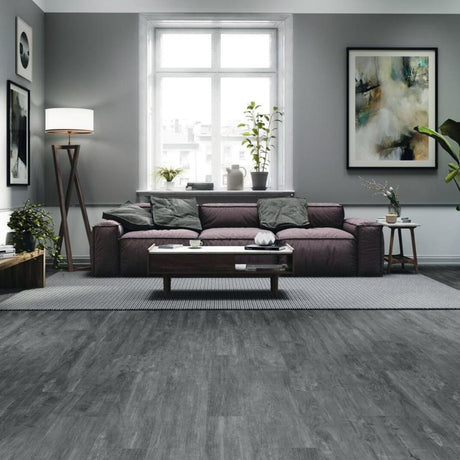 Dark Grey Rustic Style Wood Plank PVC Laminate Flooring, 5 Square