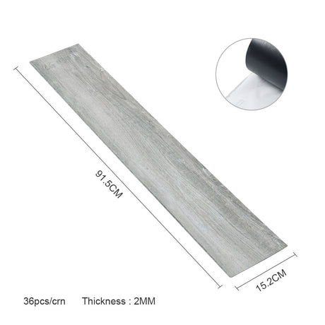 Set of 36 Planks PVC Self-stick Waterproof Floor Flooring Plank, Light Grey