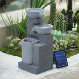 Outdoor 3 Bowls Water Feature Fountain Rockery Decor Solar Powered