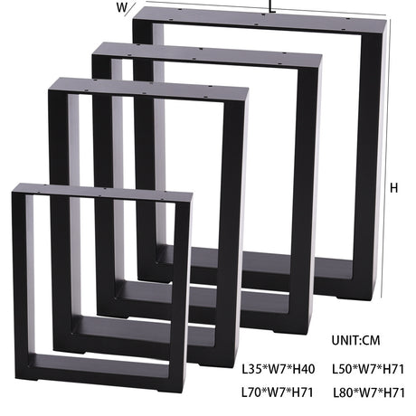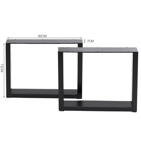 Set of 2 Metal Table or Bench Legs Frames Square Steel Base Stands, 90x71CM