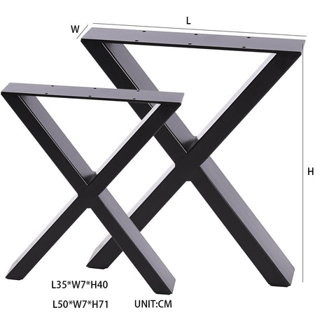 Set of 2 Metal Table or Bench Legs Frames X-Shape Steel Base Stands, 50x71CM