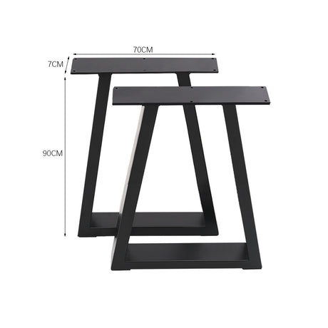 Set of 2 Metal Table Bench Legs Frames Trapezium with Top Steel Base Stands, 70x90CM