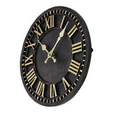 Experience timeless beauty with this Roman Numeral Wall Clock. Crafted with resin, this clock features a rich black and gold finish that adds class to any room. The Roman numeral display lends a vintage charm, while the 12-inch size allows for clear visibility from afar. Run by a precise quartz movement, it guarantees precise timekeeping. Whether hung in a living room or office, this clock effortlessly blends style and practicality.