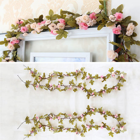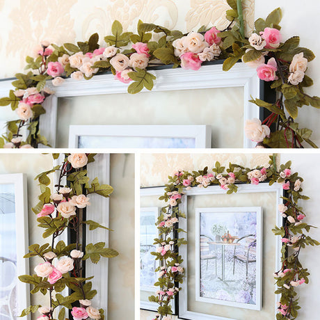 7Ft Artificial Pink Silk Rose 42 Heads Flowers Hanging Garland Vine Wreath Decor