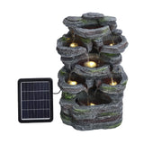 Solar Energy Rock Garden Resin Fountain Waterfall with Lights