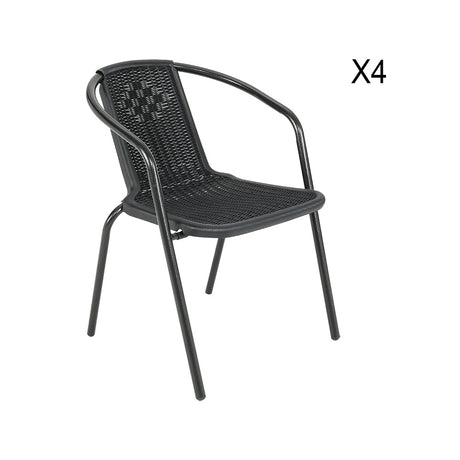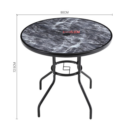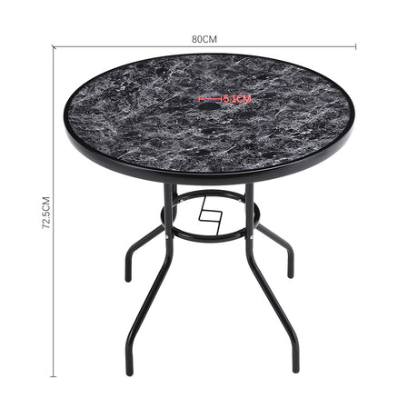 Black Round 80cm Garden Tempered Glass Marble Coffee Table with Four chairs