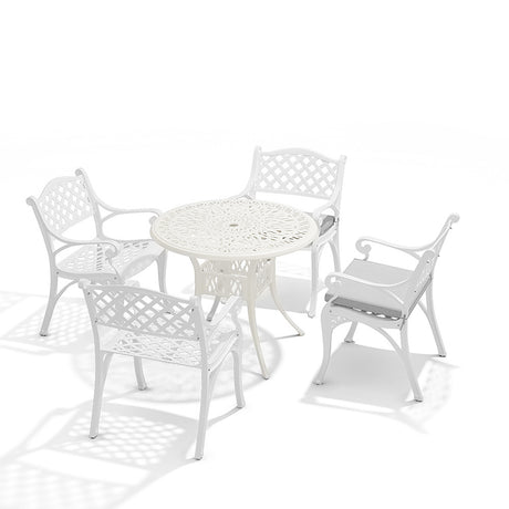 White Set of 5 Retro Garden Cast Aluminum Table Set