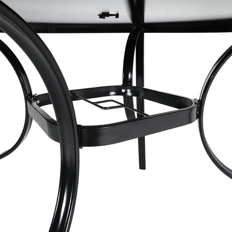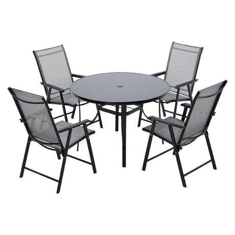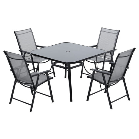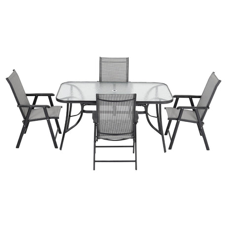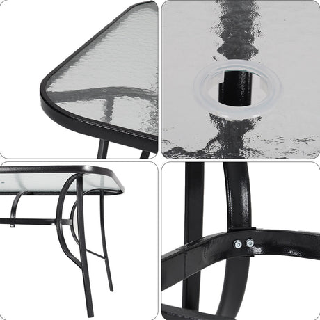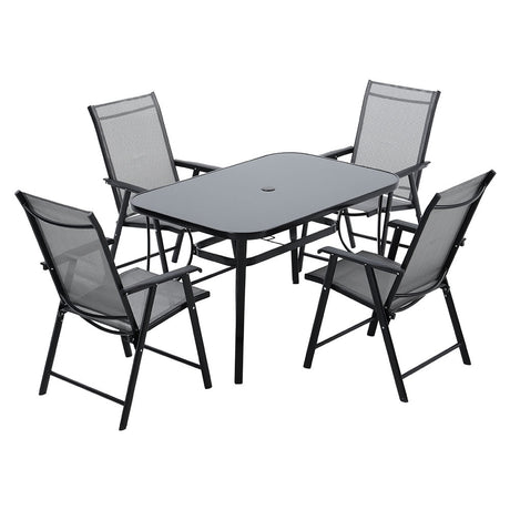 Black Set of 5 Garden 120CM Rectangle Glass Umbrella Table and Folding Chairs Set