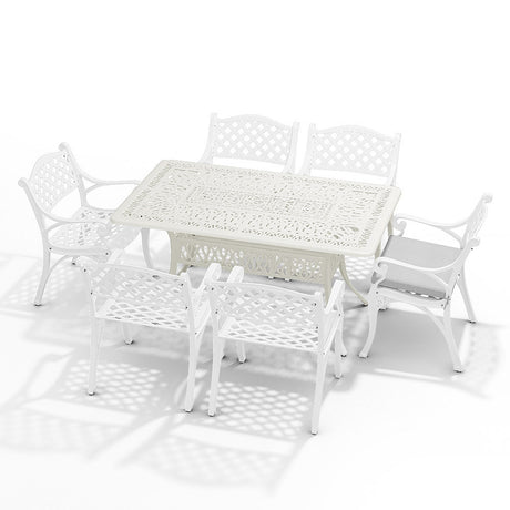 White Set of 7 Retro Garden Cast Aluminum Table Set