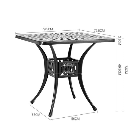 Set of 3 Cast Aluminum Square Outdoor Dining Set