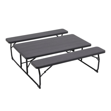 Black Foldable Picnic Table and Bench Set with Parasol Hole
