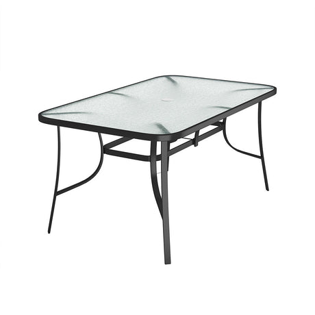 Set of 5 Garden 150CM Rectangle Glass Umbrella Table and Stackable Chairs Set