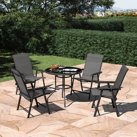 Set of 5 Garden 105CM Patio Glass Umbrella Round Table and Folding Chairs Set