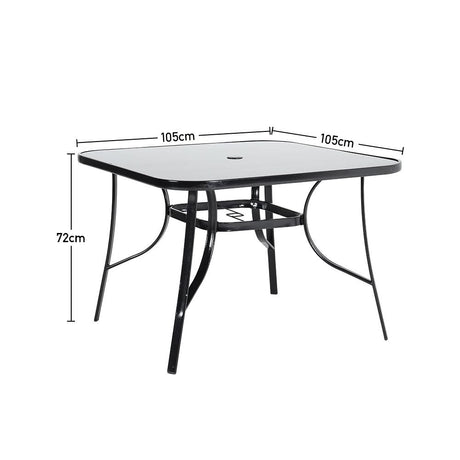Set of 5 Garden 105CM Patio Glass Umbrella Table and Stackable Chairs Set