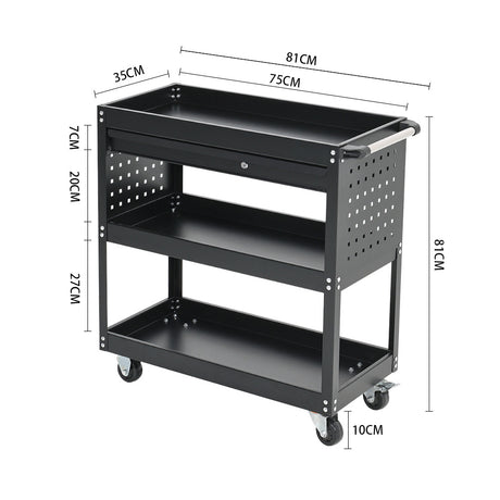 3Tier Rolling Tool Trolley with Lockable Drawer