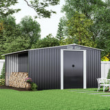 8ft x 8ft Metal Garden Tools Shed With Firewood Log Storage,Dark Grey